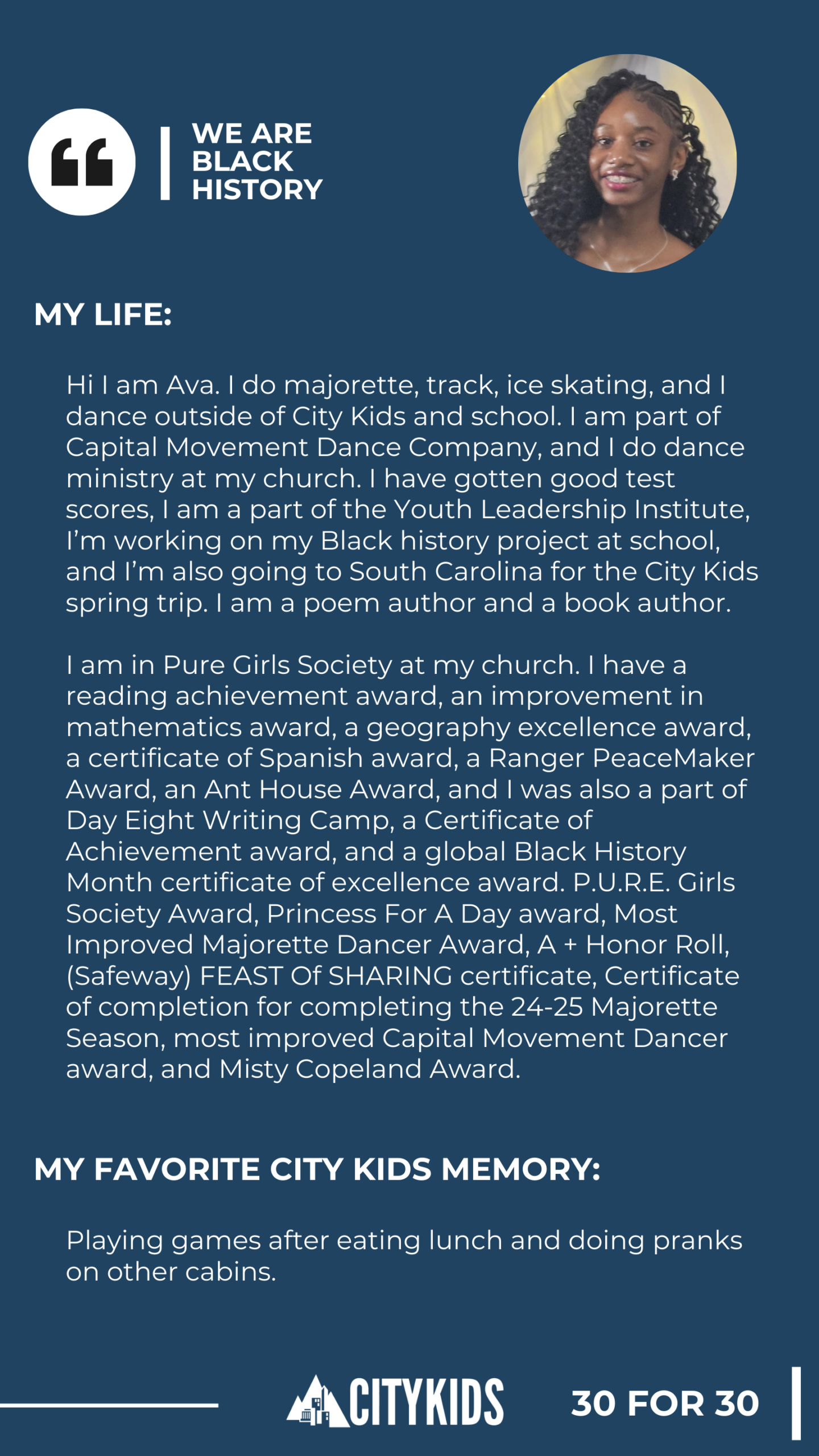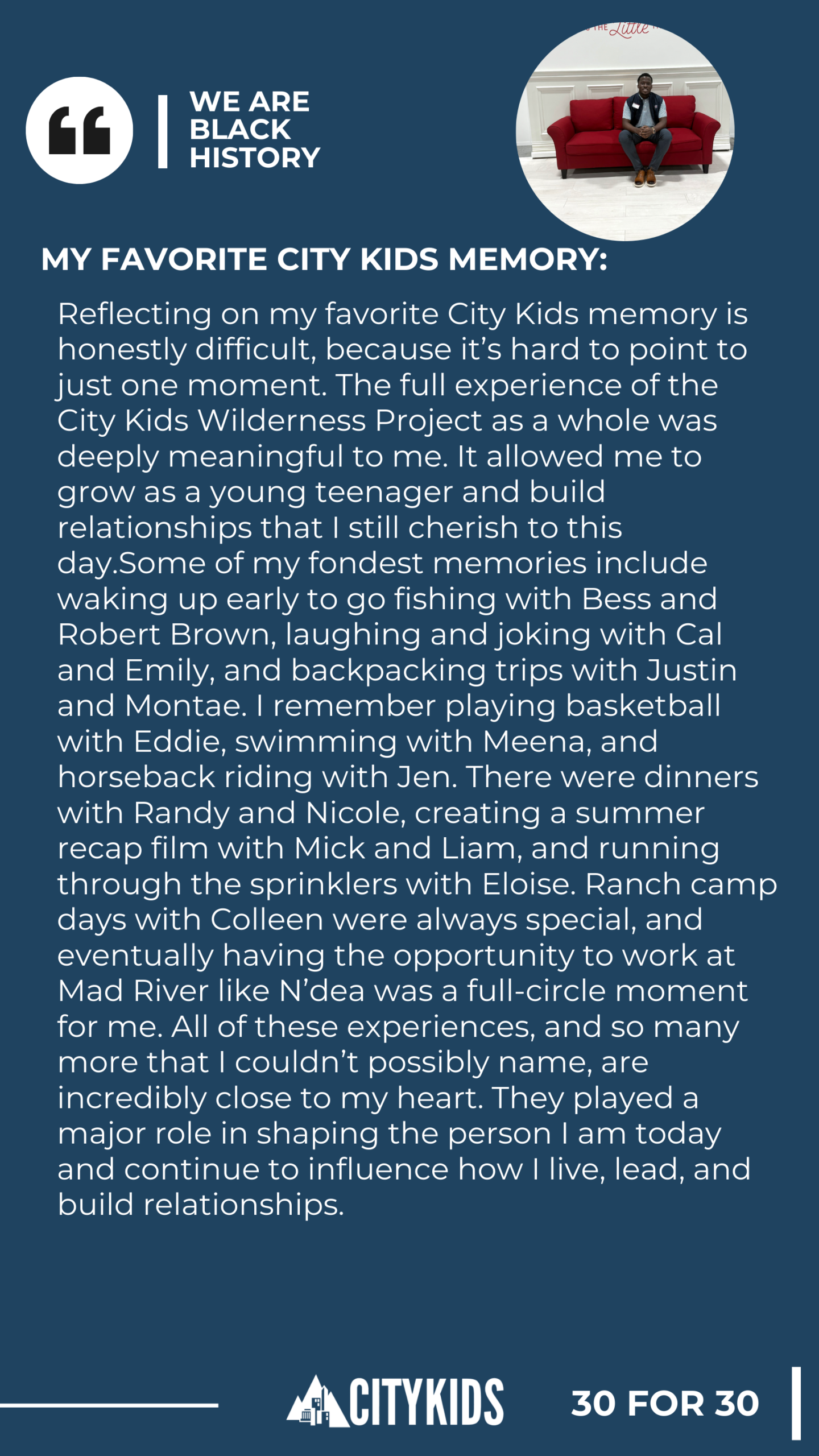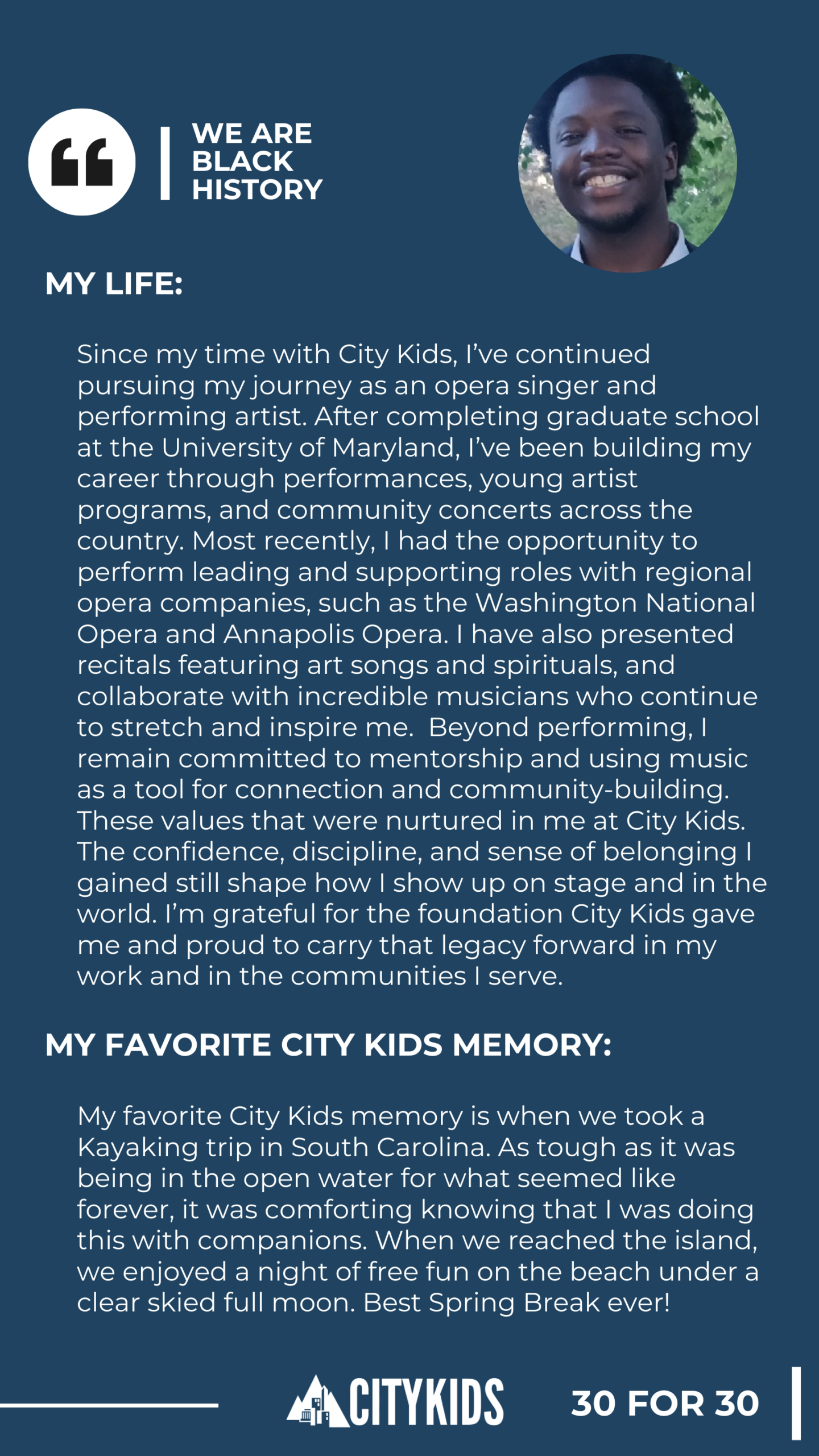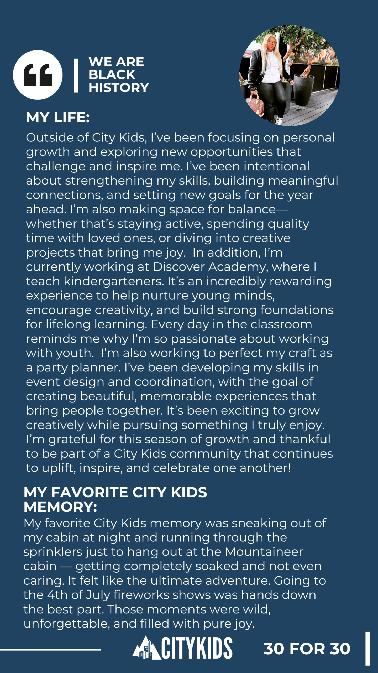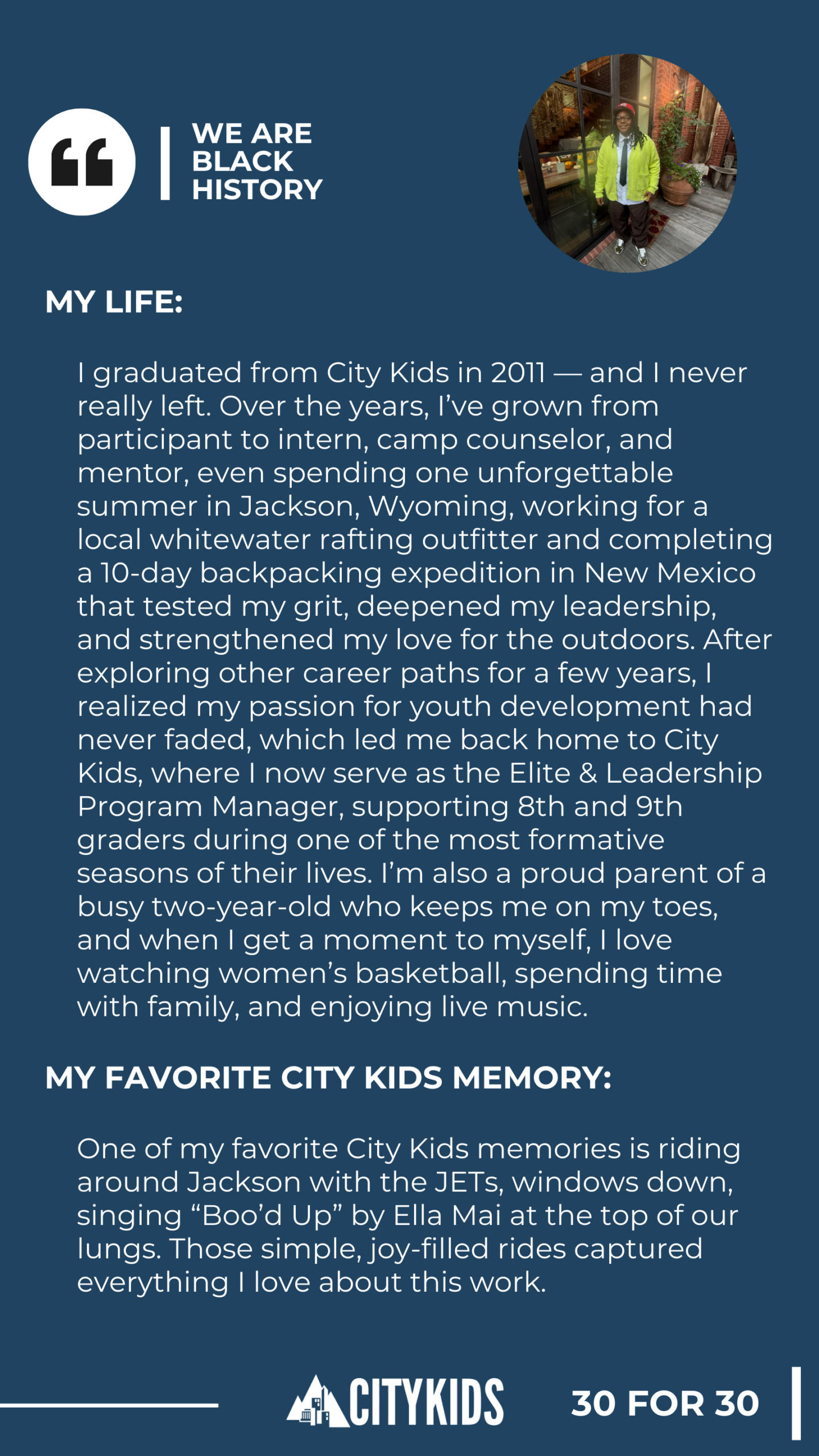 As we celebrate 30 years of City Kids during Black History Month, we’re honoring the young people who shaped our story — year by year, voice by voice.